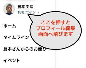 左上の自分の名前が表示されている部分をクリックすると、「プロフィール欄」に飛べます。